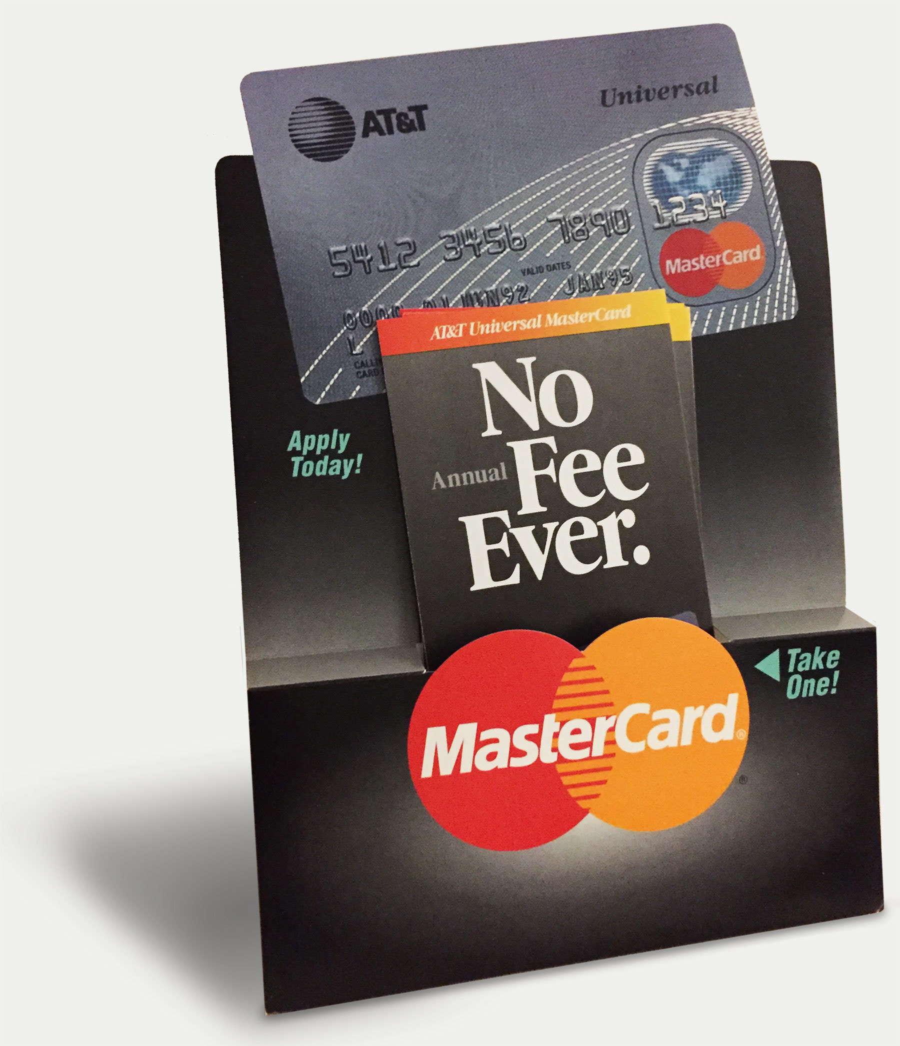 This was a very successful "Take One" display for college campus solicitation/ While competitors were trying to look hip with the latest MTV type grunge graphics, we decided to convey a very "adult look" strategy to reflect the serious nature of applying for their first credit card / a Special Student Offer.